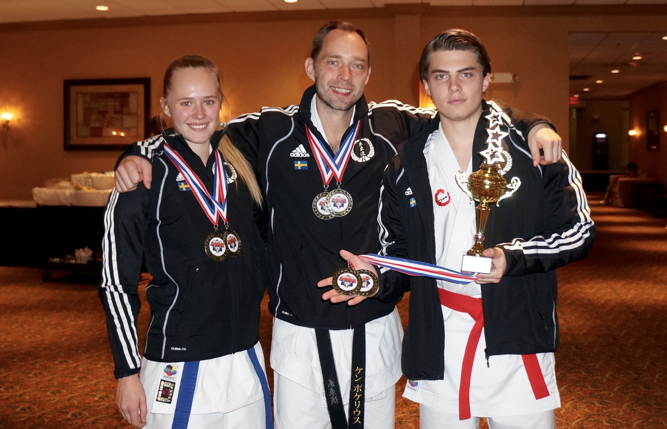 Lag Junior Dam Kumite Guld (Maja, Mariam & Alva) Lag Junior Herr Kumite Silver (Max & Philippe) Lag Kadett Dam Kumite Silver (Amanda, Clara & Thea) Lag Kadett Herr Kumite Guld (Tom, Frank, Isak & Timo) Lag Senior Dam Kata Silver (Erica, Maja, Mariam)